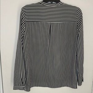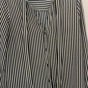 Long-sleeved blouse with navy and white vertical stripes. In very good condition.