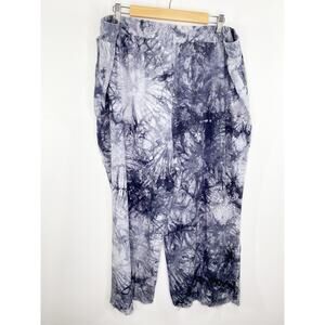 Royalty Collection Blue Tie Dye Linen Blend Raw Hem Pants Women's Plus Size 3X