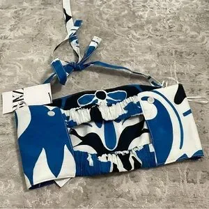ZARA Floral Crop Top Blue/White Size XS NEW!!