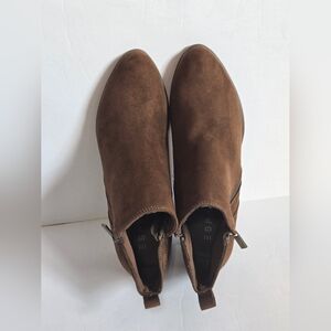 Brand Esprit Timber Brown Faux Suede Ankle Boots Women's Size 8.5M Side Zip