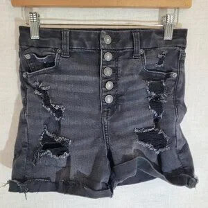 American Eagle Jean Shorts Womens 4 Curvy Super Hi Rise Shortie Denim Button Fly