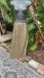 This skirt starts with an elastic waist line that will stretch easily to 25×2 = 15 inches. The skirt is a mid length to a maxi length depending on your height and encrusted with the smaller kind of goldmetallic sequins. The entire skirt is stretchy. Fully lined an excellent condition. New with tags.