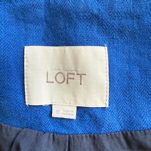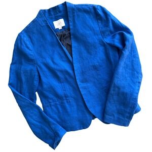 LOFT Women Royal Blue 100% Linen Open Front Peplum Blazer Jacket Size 10 Modern