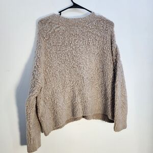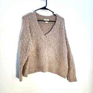 Anthropologie SP Tan V-Neck Sweater Relaxed Fit Merino Wool Blend