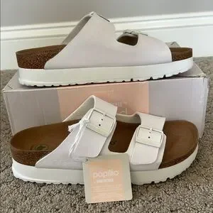 Birkenstock Arizona Papillio Flex Platform Sandal Slide White SZ US 10 EU 41 NEW