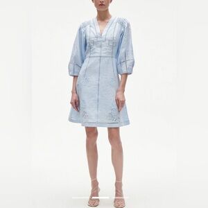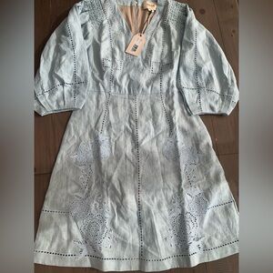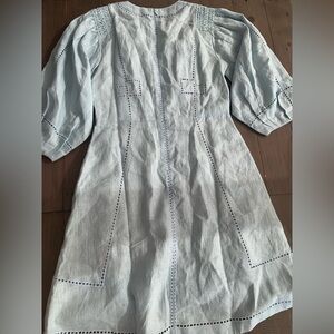 Figue Verna Linen embroidered dress soft blue NWT