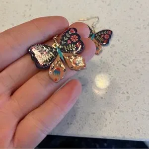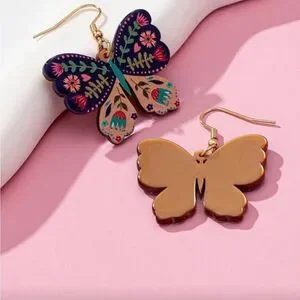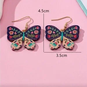 Elegant floral butterfly earrings with vibrant colors. Perfect for adding a touch of nature-inspired beauty to any outfit.