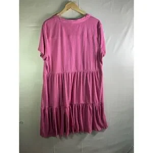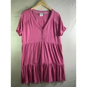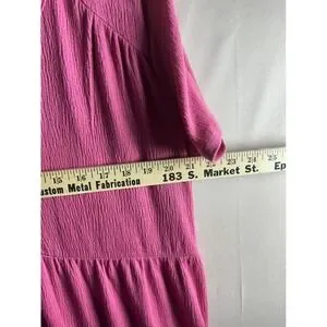 Knox Rose Pink Tiered Babydoll Dress V-Neck Short Sleeve Textured Crepe L