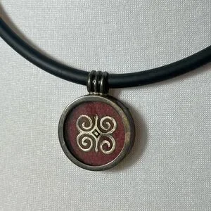 925 Mexican Silver Humility Symbol Cross Dwennimmen Adinkra Pendant Ghana Fabric