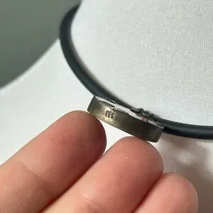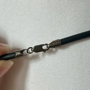 Pendant seems to be made of some sort of fabric and encased in the pendant. Chain it comes on is a rubber material.