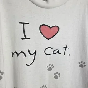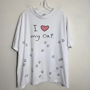 Vintage Hallmark Single Stitch White Tee I Love My Cat Paw Prints Womans Sz XL