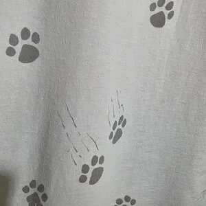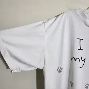 Charming white tee with a pink heart and gray paw prints. Ideal for cat enthusiasts.