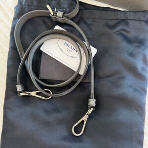 Sleek Prada tote in charcoal leather. Perfect for versatile style. Luxurious and functional design.
