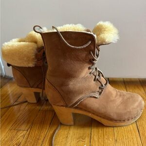 No.6 lace-up boots with cozy shearling lining. Perfect blend of style and warmth. Marked size 40- No.6 sizing runs small- best fits size 8 1/2