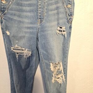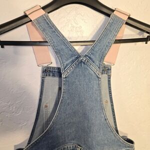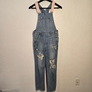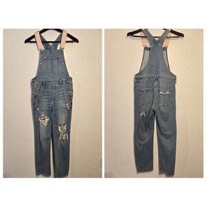 American Eagle 90s Boyfriend Overalls Small Womens Blue Distressed Pink Straps