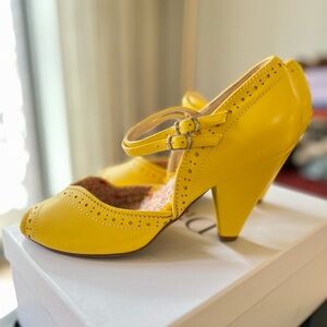 Bettie Page by Ellie Bright Yellow Mary Jane Heels