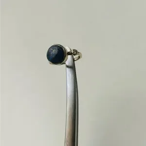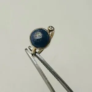 Bold and simple deep blue lapis lazuli ring with a tiny natural diamond at the side.