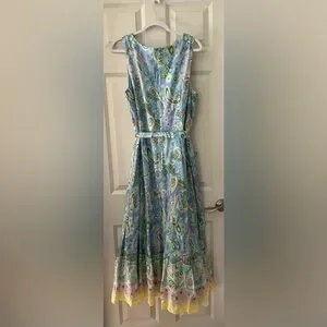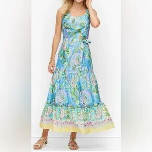 Talbots VOILE MIDI DRESS PAISLEY Fit & Flare Dress Scoop Neck self-tie belt 16