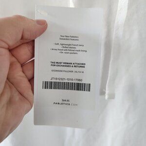 The Fabletics Oceanside Pullover Hoodie is designed for comfort and style, featuring a soft, lightweight French terry material. Its relaxed fit with short rolled sleeves and mesh-lined hood offers both breathability and casual elegance, suitable for everyday wear or relaxed outings. It is in excellent NWT condition with no holes, rips or stains. Bundle with other items in my closet to get the most out of shipping!
