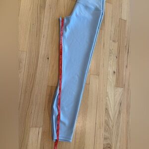 Alo Yoga Airlift Set. Includes Airlift Super Sleek Bra Tank and 7/8 High-Waist Airlift Legging. Color is Seashell Blue. Leggings are a size Small, Bra Tank is a size Medium (size tag has been removed). Measurements provided in the photos. Great used condition. Both pieces are rare and not currently available in this size and color combo from Alo.