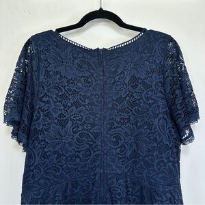 navy lace dress women, blue lace dress size 14, v neck lace dress, short sleeve lace dress, fitted lace dress women, lined lace dress, cocktail dress women, wedding guest dress, elegant occasion dress, feminine evening dress, classic navy dress, formal mini midi dress, occasion wear women, timeless lace dress, dressy event outfit