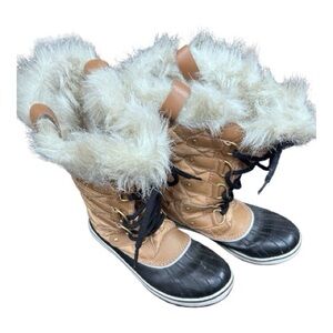 Sorel Tofino II Boots Tan Black Waterproof Winter Snow Faux Fur Size 8