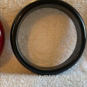 Stylish black and red bangle bracelets featuring sparkling rhinestone accents. Perfect for adding a touch of elegance to any outfit. I wear a seven 7 1/2 and I have a little bit of room in them. It depends on how larger hand is so but yeah, I think seven 7 1/2 possibly an eight could wear this bracelets, there are no stones missing and as always comes from a pet and smoke free home.