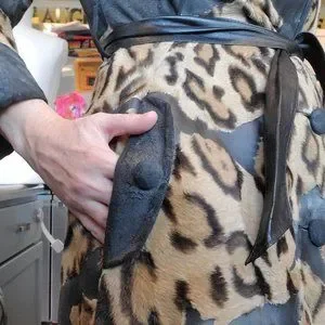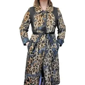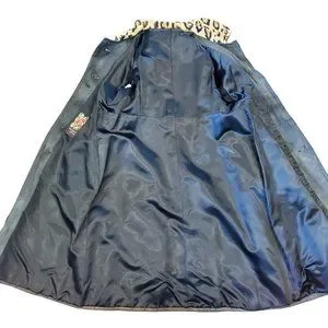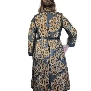 VTG 60s Small Faux Fur Leather Animal Print Leopard Statement Trench Jacket Coat