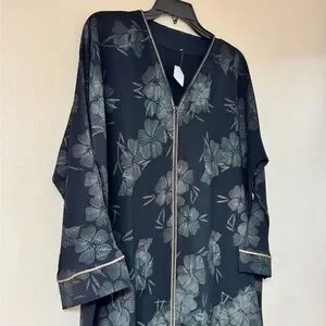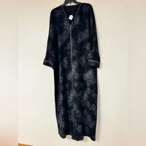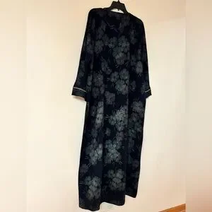 Abaya Islamic Wear Maxi Long Sleeved Dress Size XL / XXL Black Floral Green NEW