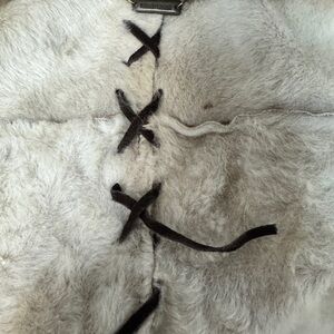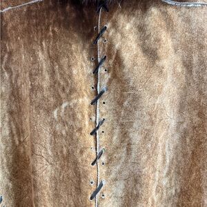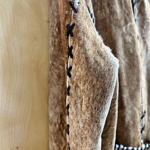 The missing whipstitch is cosmetic and does not affect the structural integrity of the coat, but professional re-lacing would restore the original look if desired. Price reflects condition.