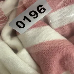 Stylish pink and white striped cardigan. Open front design. Comfortable and chic.