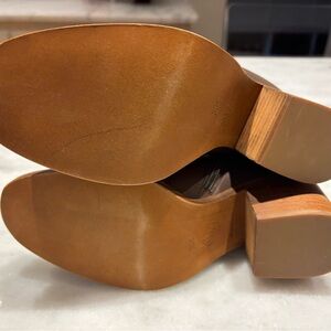 Chic taupe ankle boots by COCLICO. Sleek design with a modern touch. Stacked wood heel. Worn only once. EUC