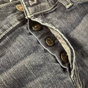 Classic mid-rise fit with light distressing and raw hem detail. Features signature 7 back pocket stitching, branded hardware, and slight stretch for comfort. Made in USA.