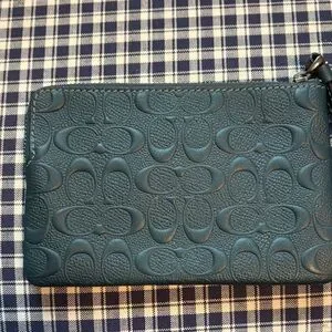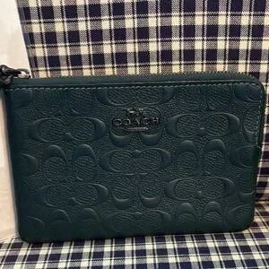 Coach Dark Green Embossed Wristlet
