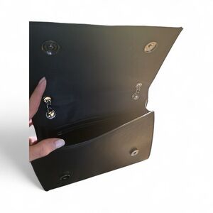 • Sleek black vegan leather exterior