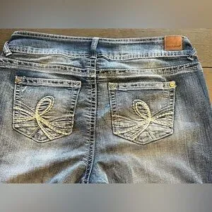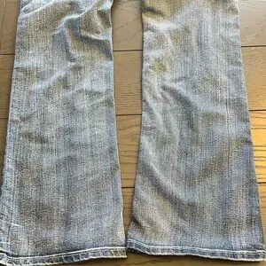 These jeans are in good preowned condition. They may have some minor flaws such as very light stains on legs (nothing major noted just normal wear and tear) show no wear to leg cuffs!