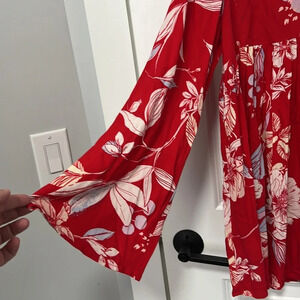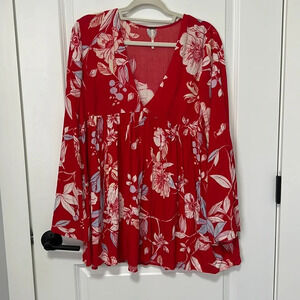 Free People Women’s Bella Floral Print Long Sleeve Tunic Top Red Size Small