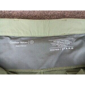 The Outdoor Voices Women's M Green Brown White RecTreck Zip Off Pants are versatile and stylish cargo pants perfect for outdoor activities like hiking. These pants feature a zip closure, adjustable waist, and multiple pockets for convenience. Made from lightweight and moisture-wicking polyester fabric, they offer comfort and breathability, making them ideal for warm weather. The green, brown, and white color combination adds a touch of nature-inspired style to your wardrobe, while the Outdoor Voices branding ensures quality and durability. Pair these pants with your favorite top for a sporty and functional outdoor look.