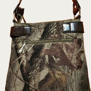 Realtree stylish Camo Crossbody with Faux Croc Strap and Buckle Details EUC