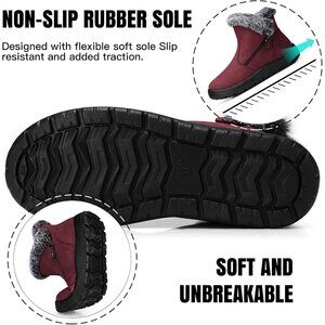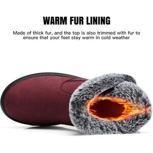 Women's Waterproof Snow Boot Warm Ankle Fur Lined Booties Insulated Shoes Red