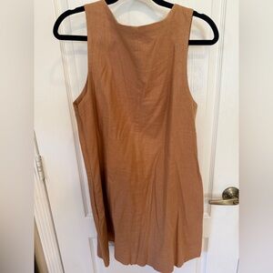 Chic brown dress. Sleeveless design. Ideal for layering or solo wear. Great for summer. Side zipper