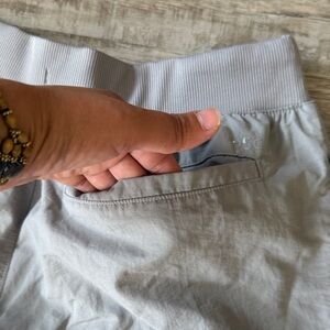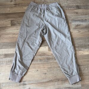 Light gray joggers with elastic waistband. Ideal for casual wear.