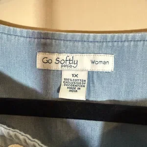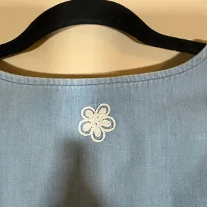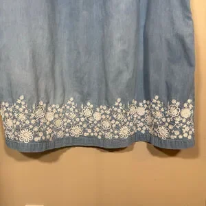 Go Softly Patio House Dress Duster MuMu 1X Floral Embroidered Chambray Denim