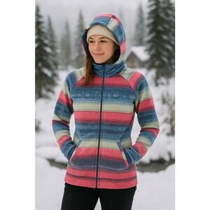 Burton WB Peak Hoodie Women’s M Full Zip Fleece Lined Striped Jacket 2014