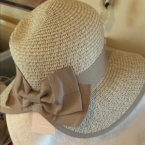 LC Lauren Conrad Taupe Woven Hat with Ribbon Bow