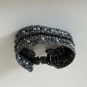 This elegant beaded bracelet features a stunning combination of black and gray beads, perfect for adding a touch of sophistication to any outfit.