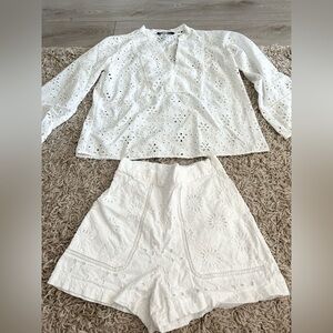 Zara eyelet embroidery white matching set XS. Wore once. Like New