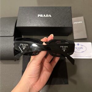 Sleek and stylish Prada sunglasses. Perfect for a modern look.