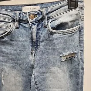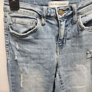 Flying Monkey - Mid Rise Split Hem Distressed Flare Jeans Women's Size 25