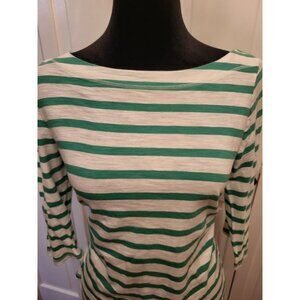 Loft Green White Striped Slub Knit Tee 3/4 Sleeves M Preppy Nautical Spring